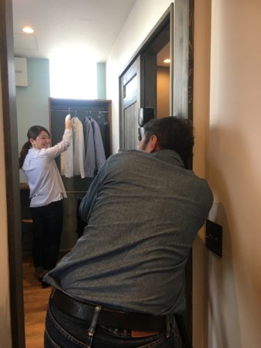 夫婦の設定なので美人プランナーの岸本さんも一緒に撮影中です。