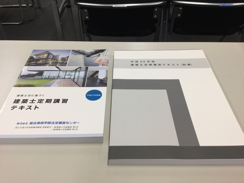 建築士定期講習 2015.05.19 こんにちは。成瀬です。 今日は1日建築士定期講習を受講しています。 定期講習は建築士事務所に所属している建築士が 3年以内ごとに受講しなければならず、 受講を忘れると罰則もあるので気をつけなければいけません。 朝、9時半から17時半までの講習でかなりボリュームがあり、 最後に修了考査もあるので必死にテキストのマーキングをしています。 年々、法令の改正や新しい建築技術が出たりするので 常にその知識を更新していかなければいけません。 午後からの講義も頑張ります!