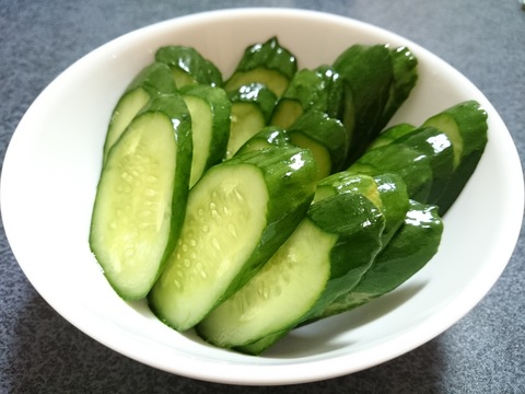 頂いたキュウリは、家に帰ってから浅漬けにして