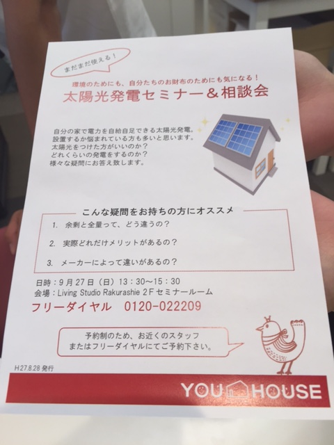 キャンペーン実施中!! 2015.09.21 ユーハウスの栗田です。 シルバーウィーク真っ最中ですが、今ユーハウスでも キッチングレード UP キャンペーンイベント真っ最中です。 イベント会場は 『リビングスタジオ・ラクラシエ』 で開催中! ← こちらの ウェルカムボードと元気なスタッフがおもてなしの心でお待ちしてます。 ちなみに次のイベントは ↓ こちらです。 常にお役に立てる情報を発信出来るようにスタッフ一同頑張っていろいろな企画立案していきます。