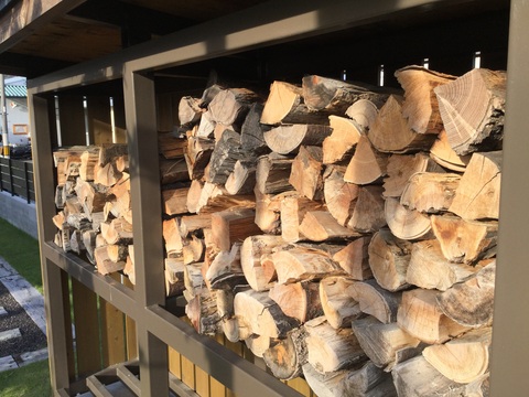 薪基本的にはナラ、クヌギ、カエデといった広葉樹を燃やしたいです。 比重が高く、薪の燃焼時間も比較的長いのが特徴です。 リンゴ、桃、梨などの樹種も香りがよく、楽しさが増えます。