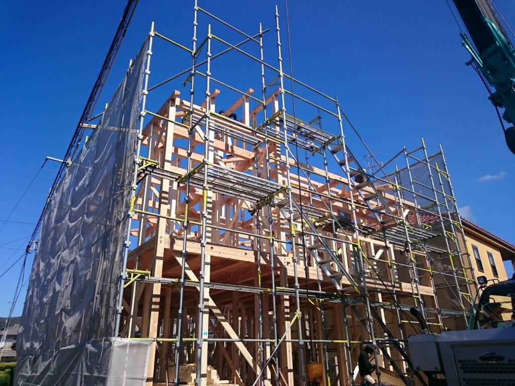 さて、タイトルにもあるように本日はM様の上棟でした! 本日は、とても天気が良く空がきりっと秋晴れに澄みあがっていました! 私は、雨男なのでたいがい雨を降らせるのですが、本日は違います。 M様の晴れパワーで素晴らしい上棟になりました!
