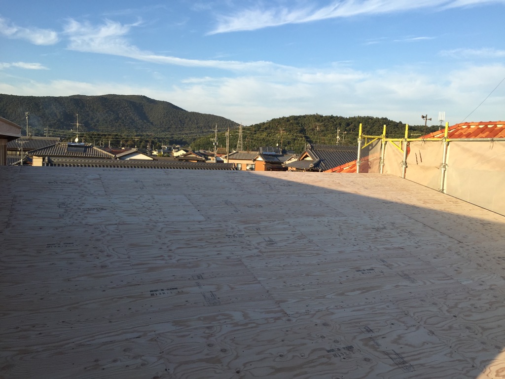 工事は順調に進み、このあと屋根のルーフィング施工、雨が降っても問題ないように雨仕舞をし 本日の工事は完了です!