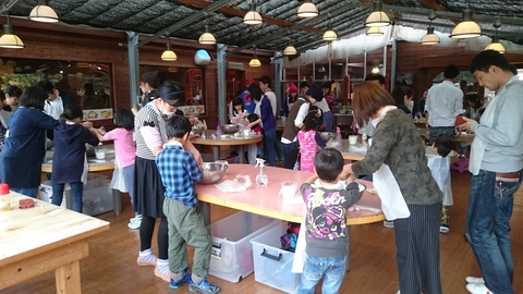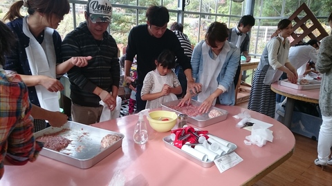 モクモクファームで昼食をとった後、みんなでパン作り体験とソーセージ作り体験。