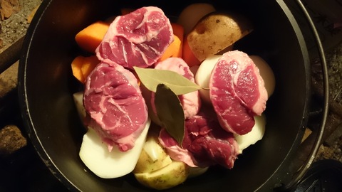 ダッチオーブンは、まずは野菜たっぷりポトフで味わい→シチューにしました