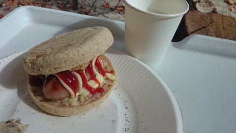 焼いたパンのあつあつのウインナーととろとろチーズをはさんで食べました