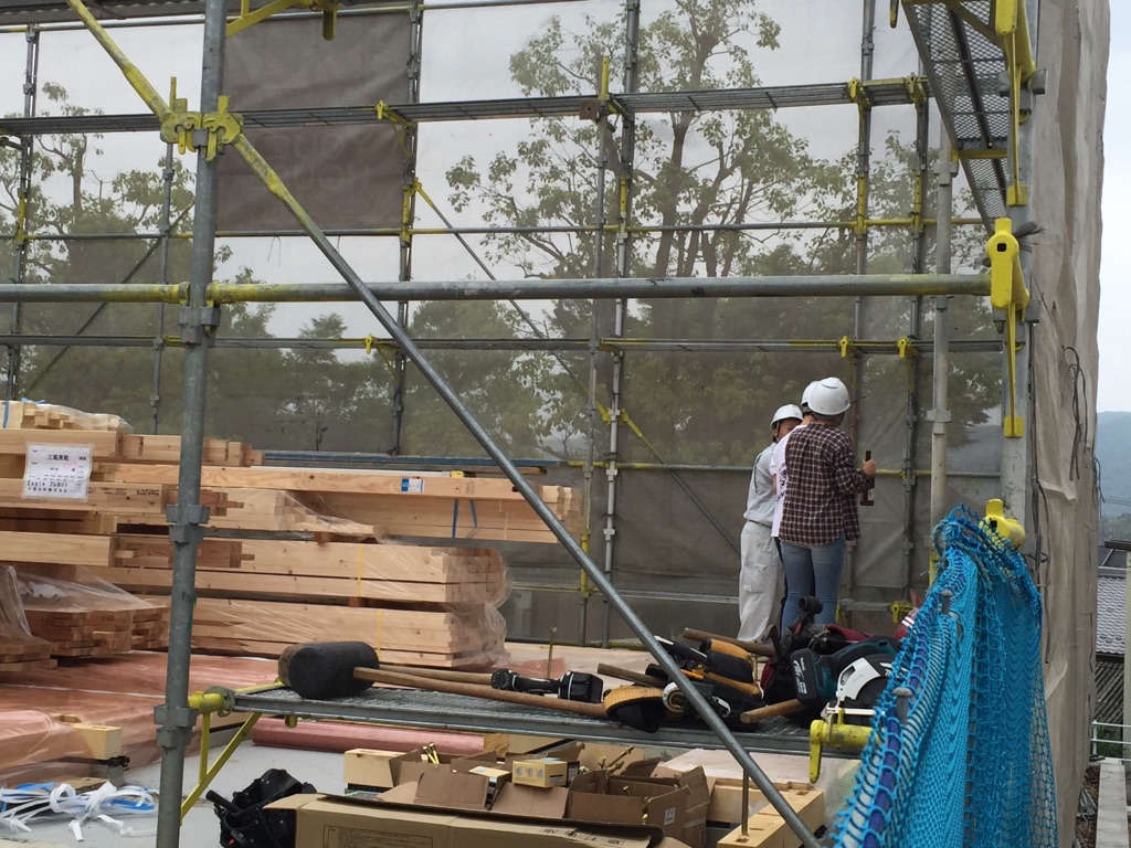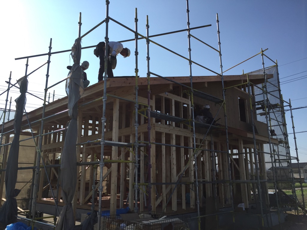 上棟前に建物の四方を清め、上棟を行いました。和のお家になっております! 完成まで楽しみです!
