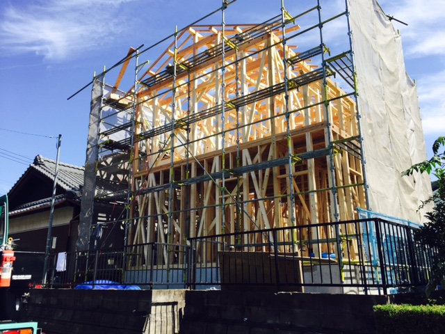 祝 上棟 2016.10.12 ユーハウスの栗田です。 本日、各務原市のM様邸の上棟に行って参りました。 最近、雨が多く基礎工事の進捗が気になっていましたが 無事上棟を迎えることが出来ました。 気候も良く作業がはかどっていて午前11時には↓↓↓ この様な感じでだいぶ家の形が出来てきました。 打ち合わせの時から家づくりを楽しんでいただいているM様ご夫婦の家が 完成するのを私も楽しみにしています。 今後共、宜しくお願い致します。