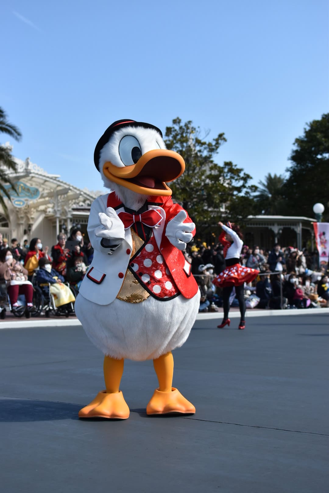 私の推しはドナルドなので、このパレードはどこにフロートが止まるとか、