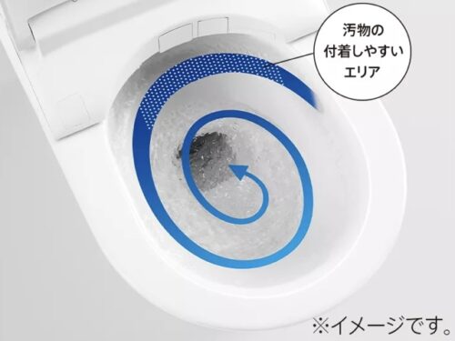 ・・・渦を巻くようなトルネード洗浄が、少量の水で勢いよく汚れを洗い流す