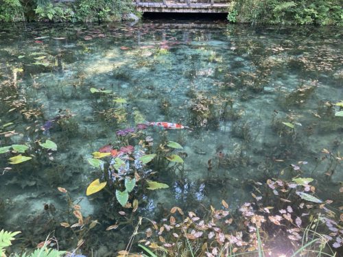 透明度の高い池の中を優雅に錦鯉が泳ぐ姿がモネの代表作「睡蓮」のようにみえることから