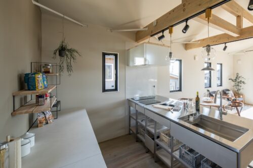 ②おしゃれなこだわりのオリジナルキッチン&洗面化粧台