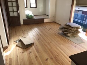 内装仕上げも終わっておりますので、養生材の引き上げ時にはいつも気を付けております。。。