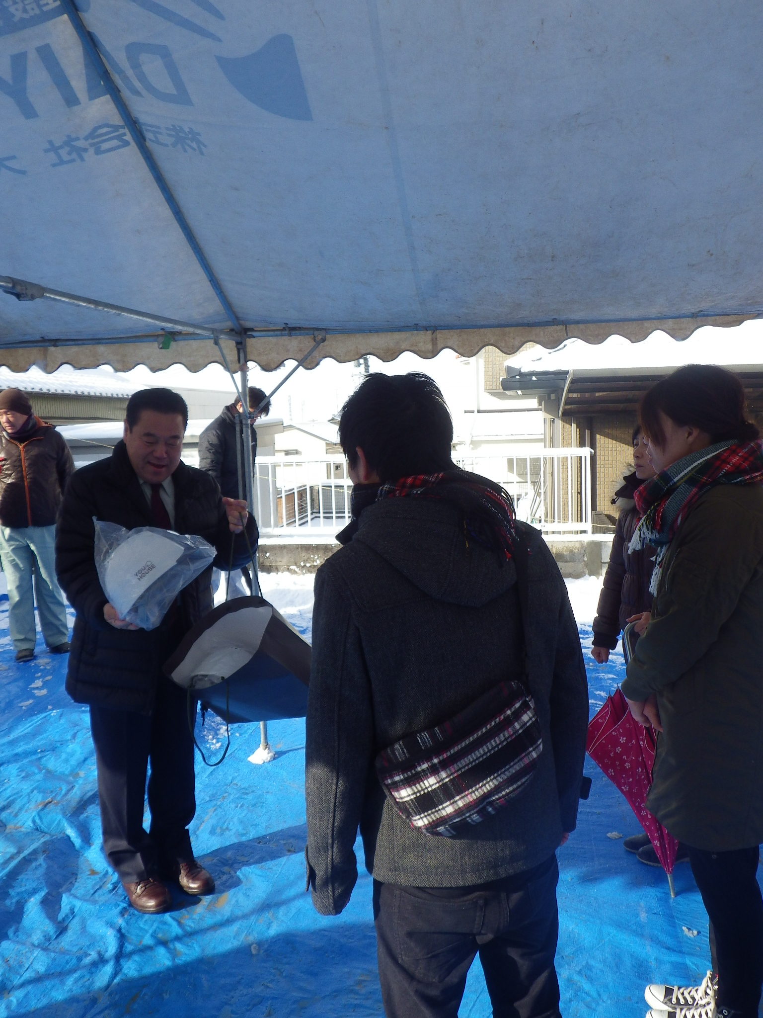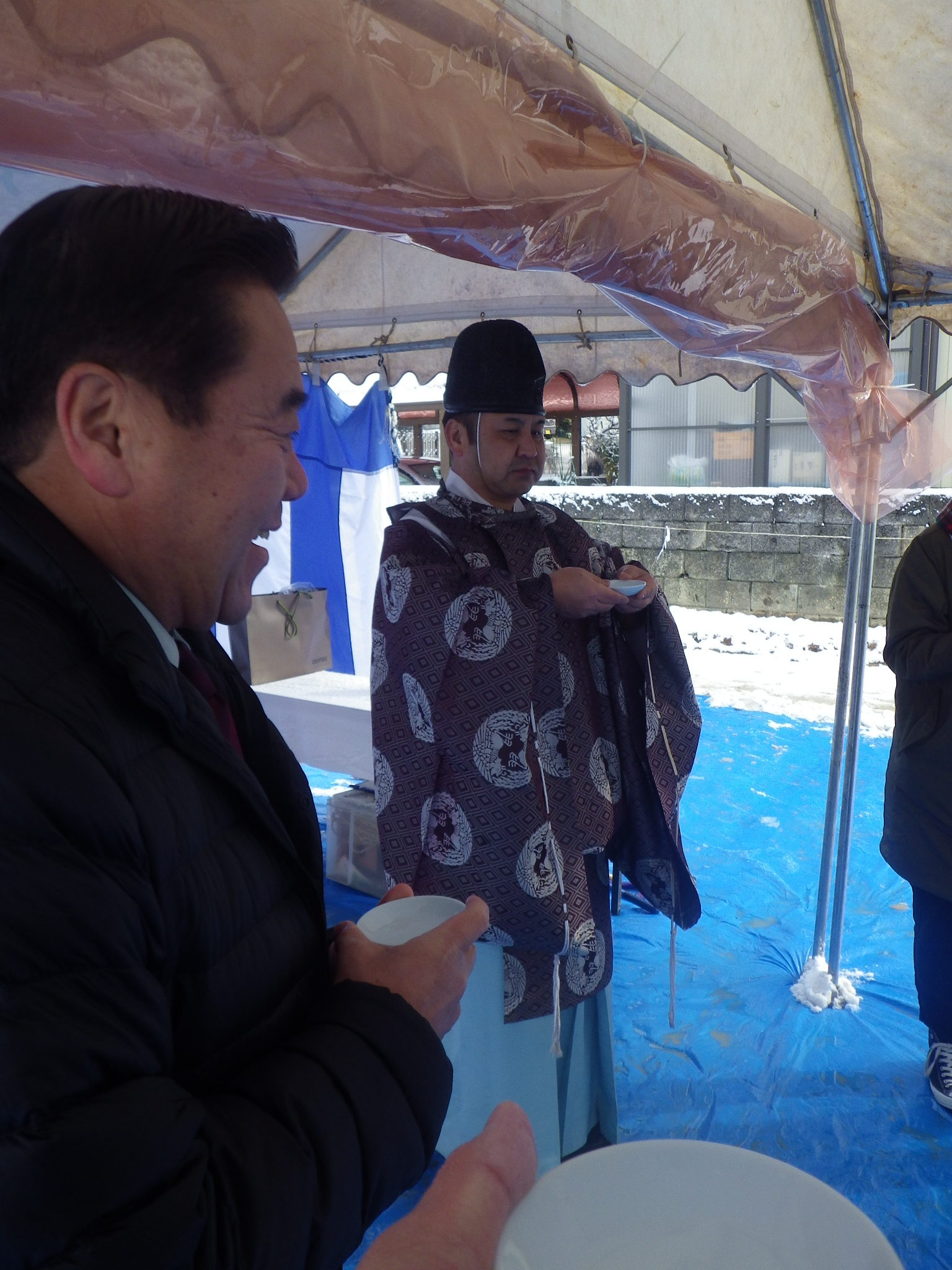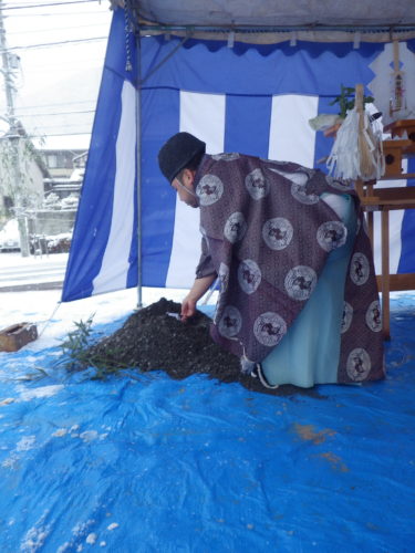 各務原市のM様邸 地鎮祭 2017.01.15 こんにちは、梅田です。 各務原市のM様邸にて地鎮祭を行なわさせていただきました。 昨晩からの大雪でしたが事前の養生と早朝の土木部の協力により、 無事に地鎮祭を終了する事が出来ました。 M様 本日は 誠におめでとうございます!! 地鎮祭後、建物配置・設計GLのご説明をさしあげ ご了承いただきました。 又、工事進捗をBlogにてご報告させていただきます!