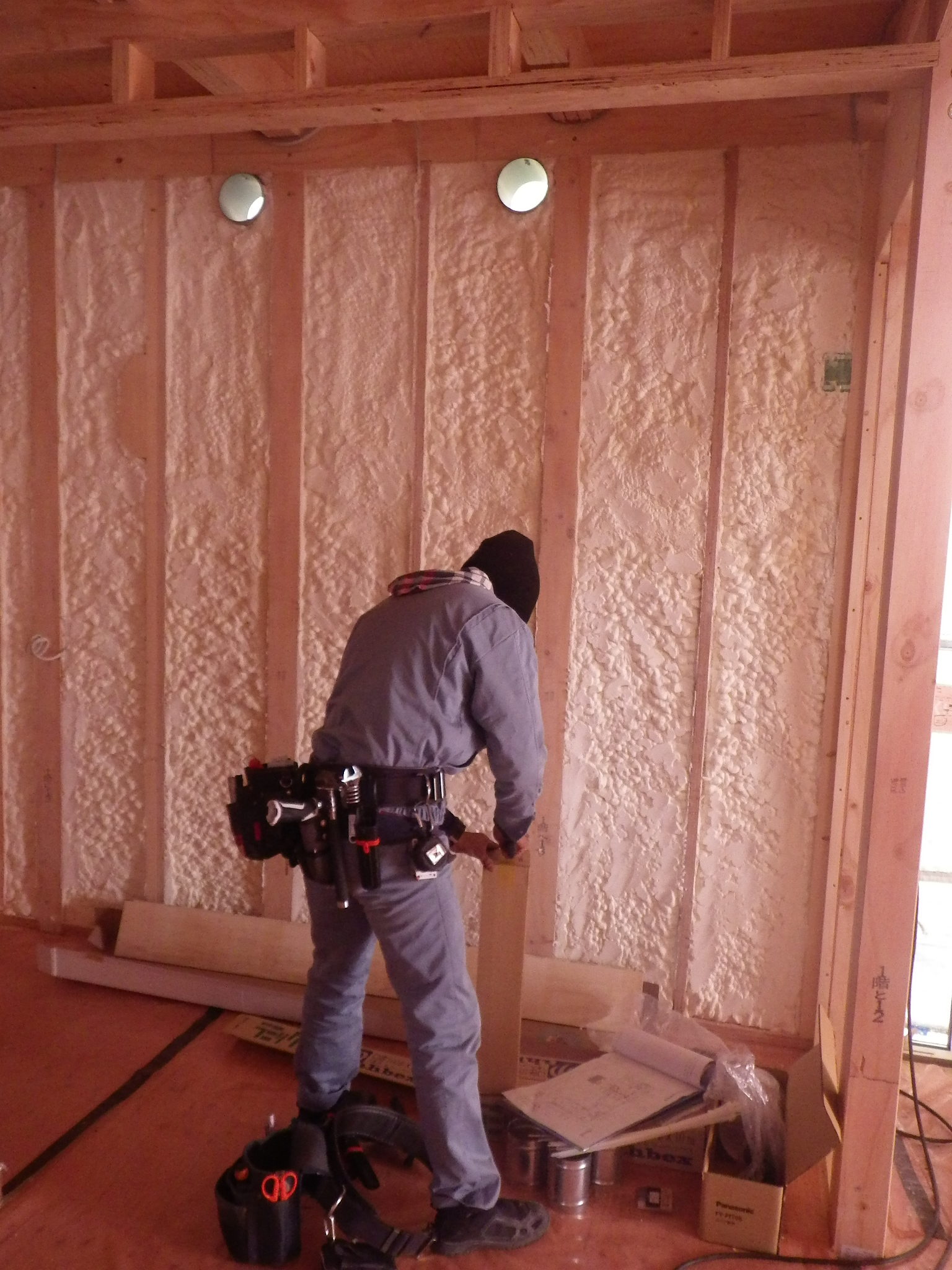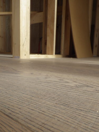 各務原市の弊社ガレージモデルハウス 造作工事 2017.01.17 こんにちは、小原です。 各務原市の弊社ガレージ付きモデルハウスでは、吹付け断熱工事も終了し、 本格的に造作工事に入りました。 大工さんによる、無垢フローリングの施工を行っております。 ラスティックなフローリング材にて施工中です。 又、工事進捗をBlogにてご報告させていただきます!