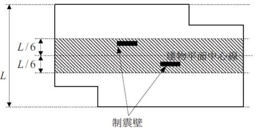 もう一つは建物中心部から建物幅の6分の1以内に2枚配置する方法。