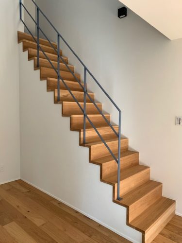 稲妻型の雛壇階段に鉄骨の手摺の組み合わせがとてもおしゃれです(*^^*)