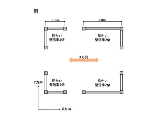 壁倍率4倍×壁の長さ1.0m×2カ所=壁量8.0m