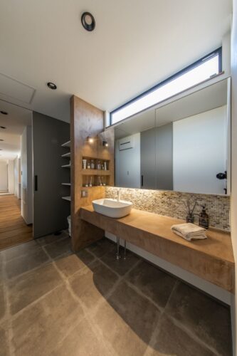 ↓↓こちらはミラー上には窓があるので、ミラー下のみ間接照明にした洗面です!