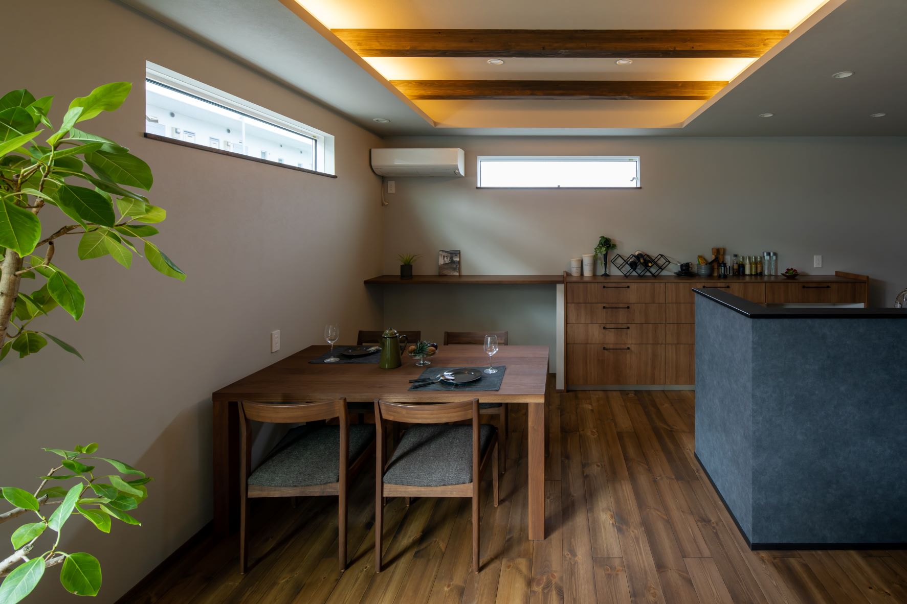 ↓↓こちらは、高さの検討を重ねて、梁を見せつつ天井面を照らす間接照明をダイニング上にいれました!