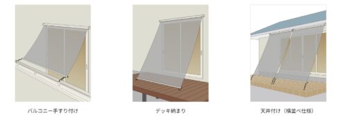 シェードは、屋外の窓上もしくは軒下に取付が出来ます(^^)