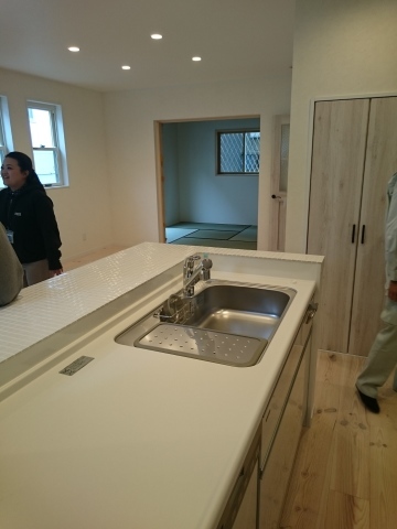 今回の現場は、予約制の見学会となりますが 外壁が漆喰塗のお家で 造作でのキッチン