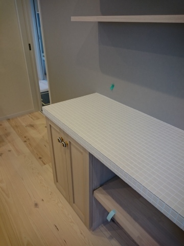 カウンター・造作洗面化粧台等見どころ満載の現場となります!