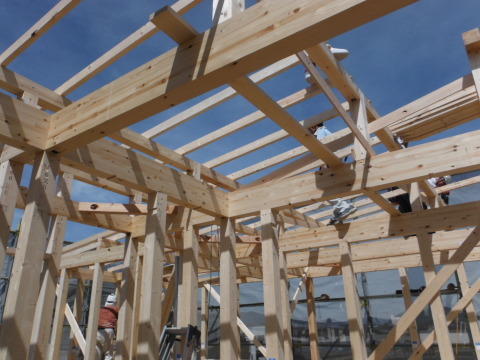 先日 モデルハウス コーレⅥを上棟しました。 2015.07.29 こんにちは 大野です。先週の土曜日に私が担当させて頂いてるモデルハウスを上棟しました。先週は交互に暑い日、雨の日 そして台風のコースが気になる一週間でした。そして迎えた建て方当日、晴天になり無事 事故けがなく作業が済みました。しかし暑くて参りました、これからは厳しい暑さが続きます、皆様も体調管理に気を付けてください。 ではこの後の進捗を次回お知らせしたいと思います。 続く