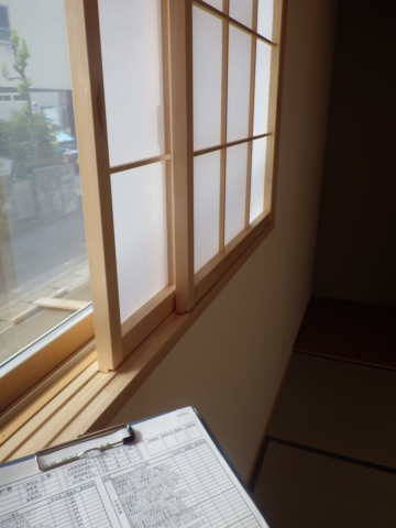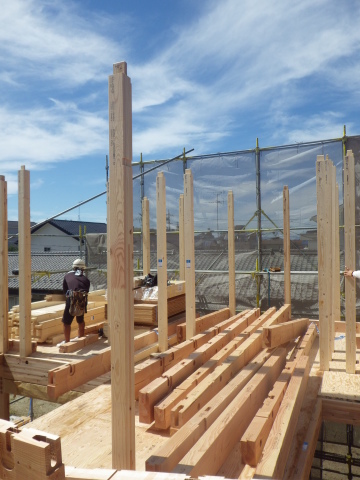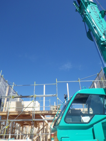社内検査 2015.09.14 こんにちは、織田です。 本日は最高気温が30℃近くまで上がった様ですが、カラットした過しやすい陽気でしたね。そんな中、各務原市のK様邸、I様邸と2邸の社内完了検査に参加してまいりました。それぞれ違ったタイプのお家で、良い感じに仕上がっていました。 又、各務原市内にてM様邸の建て方作業も行われていました。午後から社内検査がありましたので途中までの写真しかありませんが…こちらも快晴のお天気で作業が捗っておりました。