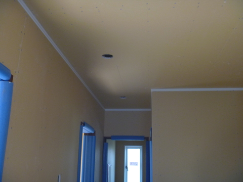 天井・壁のプラスターボードも張り、建具枠、廻縁、巾木の取付しております。