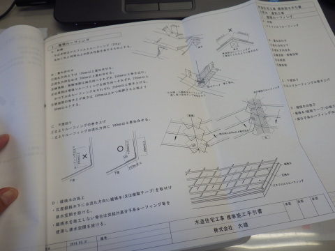 ちなみに、この部分、弊社の施工マニュアルでは屋根壁取り合い部分のルーフィングの