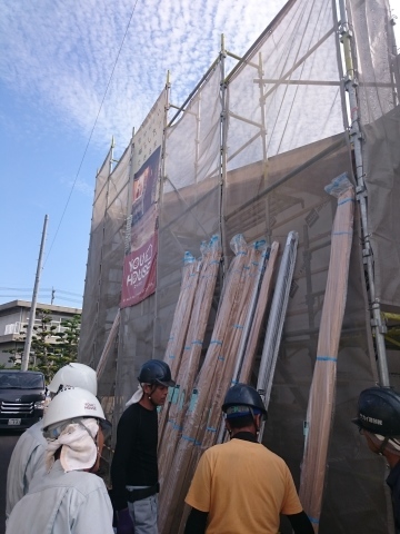 先日、FREEQHOMESの現場へ工務のメンバーと外壁材の荷受け作業に行きました。