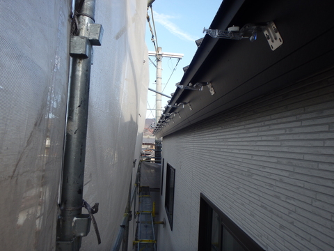 足場解体 2015.12.24 こんにちは小原です。 本日M様邸の外部足場の解体をしました。 屋根廻りの塗装工事、樋の取り付け、電気工事の外部仕上げ。 天候により延期していましたが、本日天候に恵まれましたので 午前中に各種工事、午後から足場の解体と忙しい日となりました。 足場解体後の写真は辺りが暗くなってしまったのでいい写真が撮れなかったので 機会があればまたアップします。 先日O様邸の足場解体も完了しています。 この後外部配管工事、外構工事と進みます。 工事も大詰めとなりました。完成まで頑張ります。