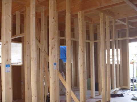 今週中には構造に関わる工事は完了し、内部の電気配線やサッシ取付、造作工事の下地工