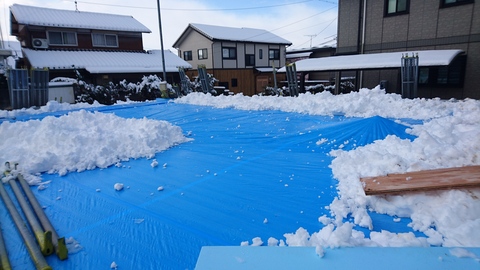 O様邸は火曜日に土台伏せをしましたが、水曜日に大雪に見舞われました。