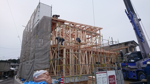 今週の寒波により天気が心配でしたが、無事に上棟することができました。