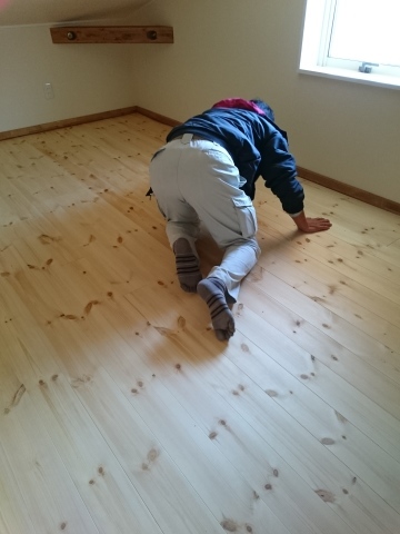 現場状況 2016.01.27 こんにちは、大野です。FREEQで建築中のA様邸も工事が大詰めです。昨日、床塗装前の清掃の手伝いを行いました。この作業は、無垢の床材の塗装前には必要となる作業です。良い塗装仕上がりを目指して下地調整を行いました。 以前のブログで小嶋さんが書いてましたがイメージを合わせた趣味の小屋も出来上がり、弊社不動産部による戸建て借家一棟と合わせて外構もほぼ完成です。