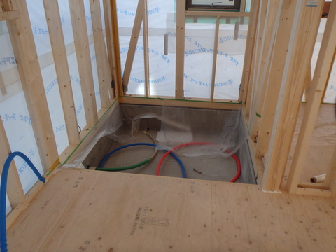 配線などの移動も終わりウレタン吹付断熱施工の準備に入りました。