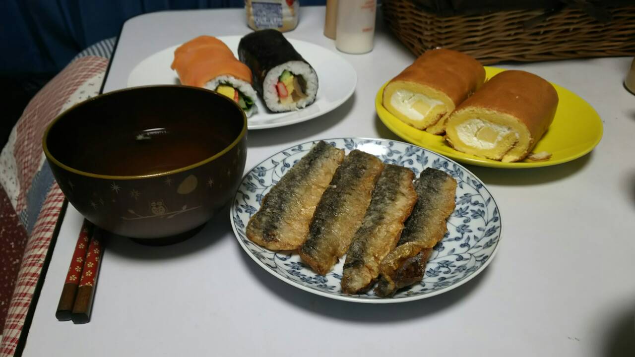 恵方巻食べました! 2016.02.13 こんにちは、堀です。 節分の日に、恵方ロールを食べたい!というブログを書きましたが 有言実行ということでその日の夕飯は巻き物?尽くしにしてみました。 ノーマルな恵方巻に、サーモンロール恵方巻に、恵方ロール! あと、イワシのフライ(節分ということでイワシを使ったお惣菜もたくさん売っていました) 机いっぱいに切られていない巻き物が並ぶ様は、正直ちょっと気持ち悪く 「やり過ぎた・・・」とも少し思いましたが、節分を満喫することが出来ました☆