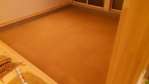 リビングの床 2016.02.19 こんにちは小原です 先日O様のお宅を訪問させていただきました その際にリビングがコンクリートの仕上げになっていますが、お子様が小さいという こともあり寝転がったり遊んだりするスペースを確保するために、O様がご自身で用意 されたコルク素材?のマットを敷詰める作業をお手伝いさせていただきました 壁との取り合い部分のカットは簡単にカッターで切断でき大きさも自由にできました マットの値段の割にはきれいに仕上がりO様も喜んでいました こんなお部屋も面白いですよね