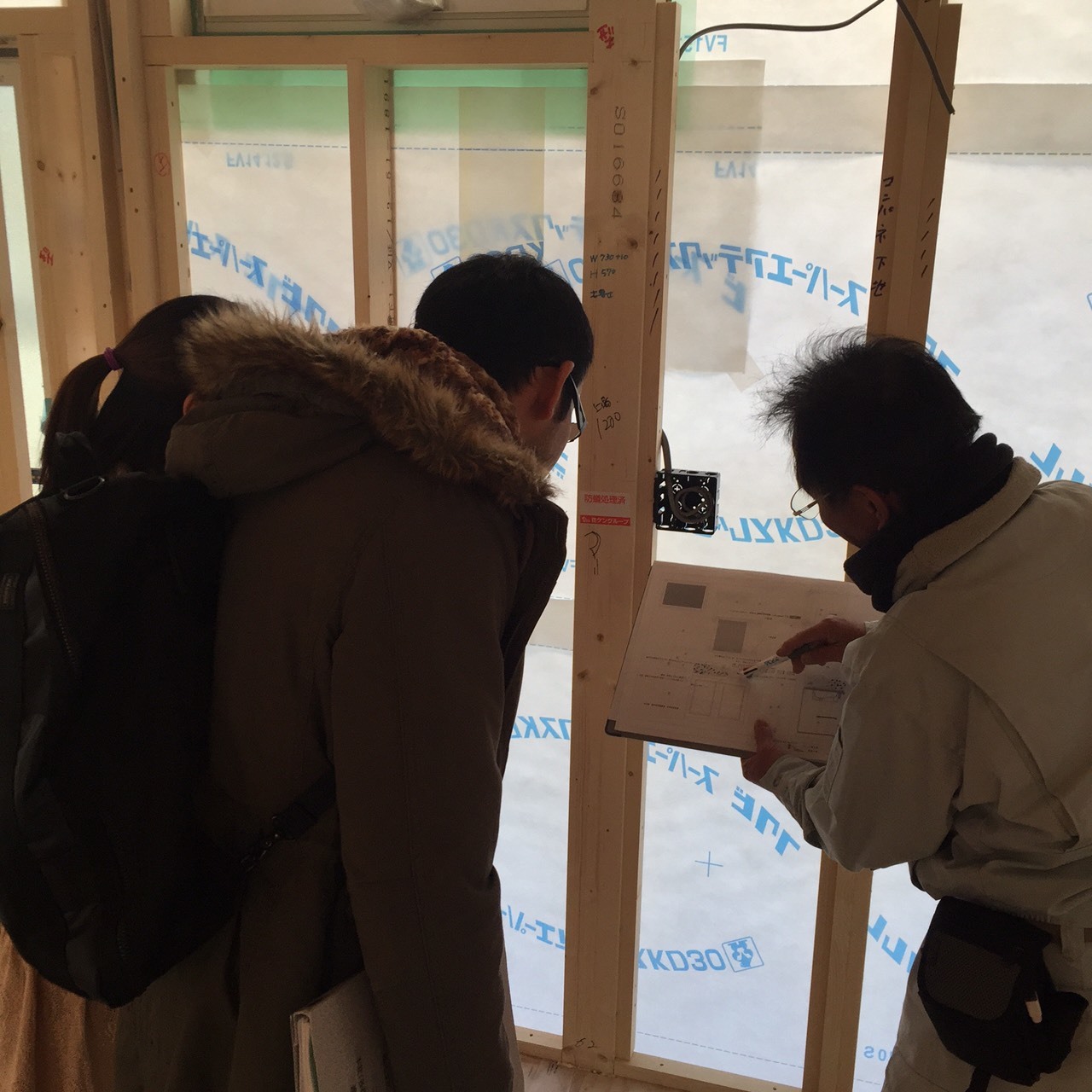 電気配線打合せ 2016.03.11 こんにちは、大野です。本日 瑞穂市の現場にて N様に現場へお起こしいただき電気配線の打合せと現場の進捗状況を確認していただきました。スイッチ・コンセント等の位置を現場で図面の位置を説明させていただき他の関連する事項もお打合せさせていただきました。来週からは、断熱材の吹付け、造作工事の再開と現場は進みます。又、工事進捗をBlogにてご報告させていただきます!