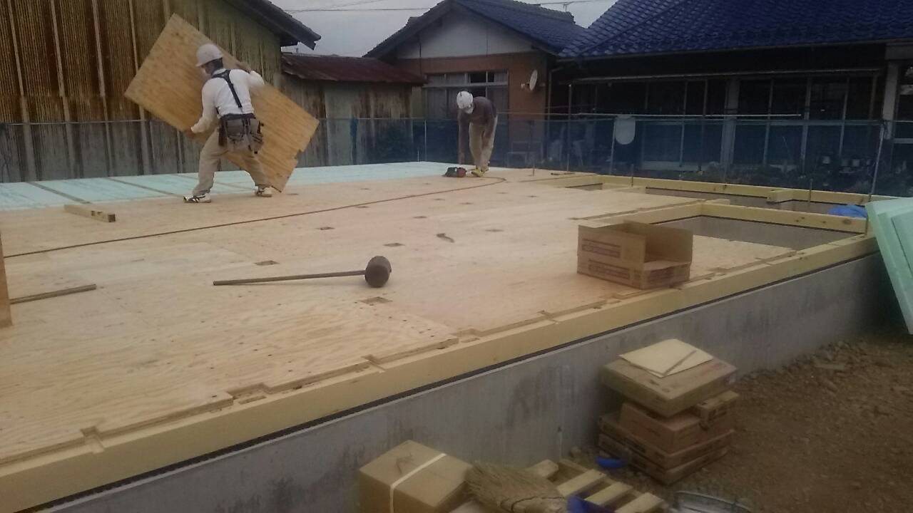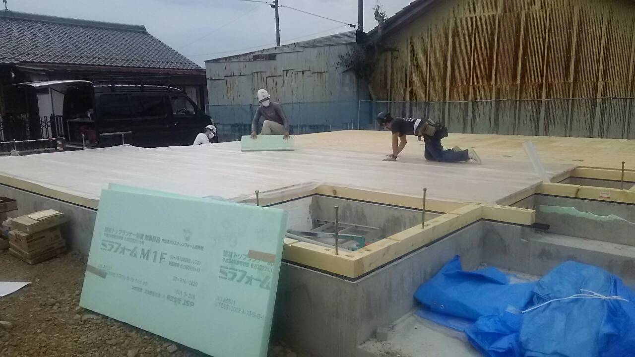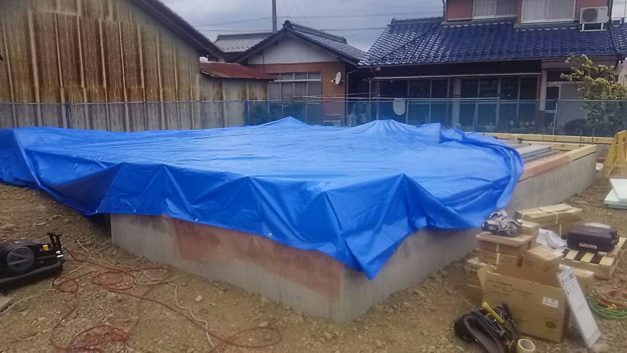 現場状況 2016.03.19 こんにちは、小原です。昨日、岐阜市で現場管理を担当しておりますA様邸にて土台敷きを行いました。天気予報では午後から降雨予報でいたので心配しておりましたが、現場は順調に進みレインガード施工の後、大きなブルーシートでの養生まで完了いたしました。この後、先行足場組・建て方作業へ移ります。又、今後の工事進捗をBlogにてご報告させていただきます!