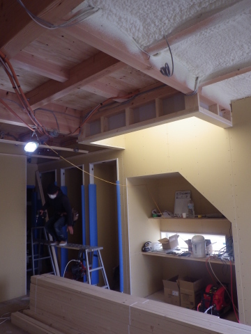 現場状況 2016.03.23 こんにちは、大野です。本日は、気調換気扇の排気ダクトの足らずまい分の引き取りへ梅田君の管理中のM様邸へお邪魔しました。M様邸は、外部を漆喰塗り仕上げが終了しており、内部は大工さんでの造作工事が大詰めの状態でした。外部に木製羽目板の施工もあり落ち着いた外観仕上がりのお家でした。 又、工事進捗をBlogにてご報告させていただきます!