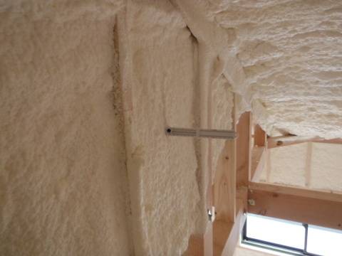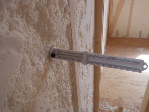 現場状況 2016.03.31 こんにちは、大野です。昨日、犬山市で施工中のN様邸にて現場吹付断熱工事の施工確認を行いました。屋根裏面、壁面と部位別に数ヶ所の部分にて厚さ確認を専用のスケールにてチェックを行いました。本日から造作材・床材の搬入を行い造作工事再開となります。 又、工事進捗をBlogにてご報告させていただきます!