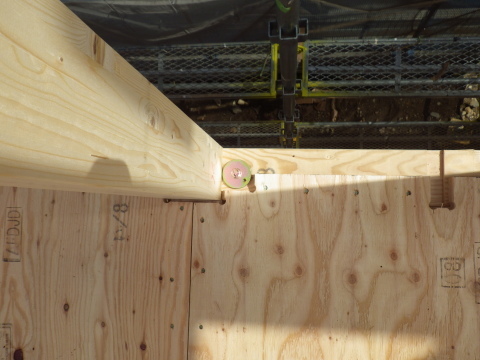 大きい座金が見える柱には大きい引き抜きの力が掛かるので