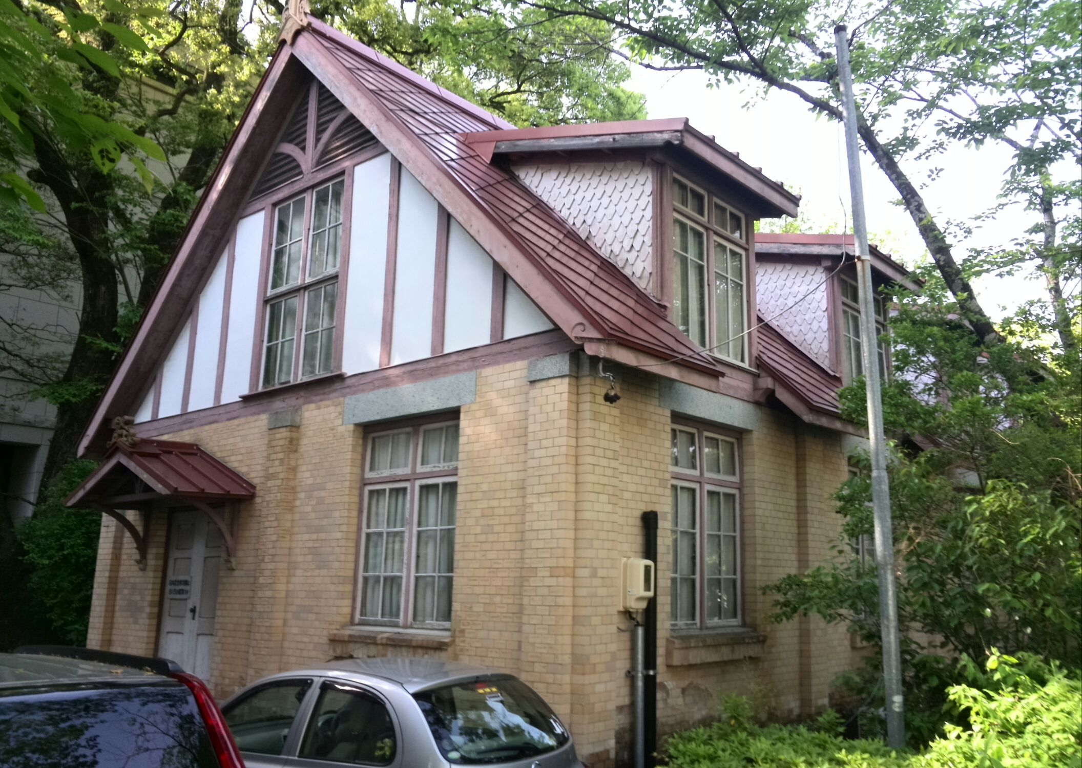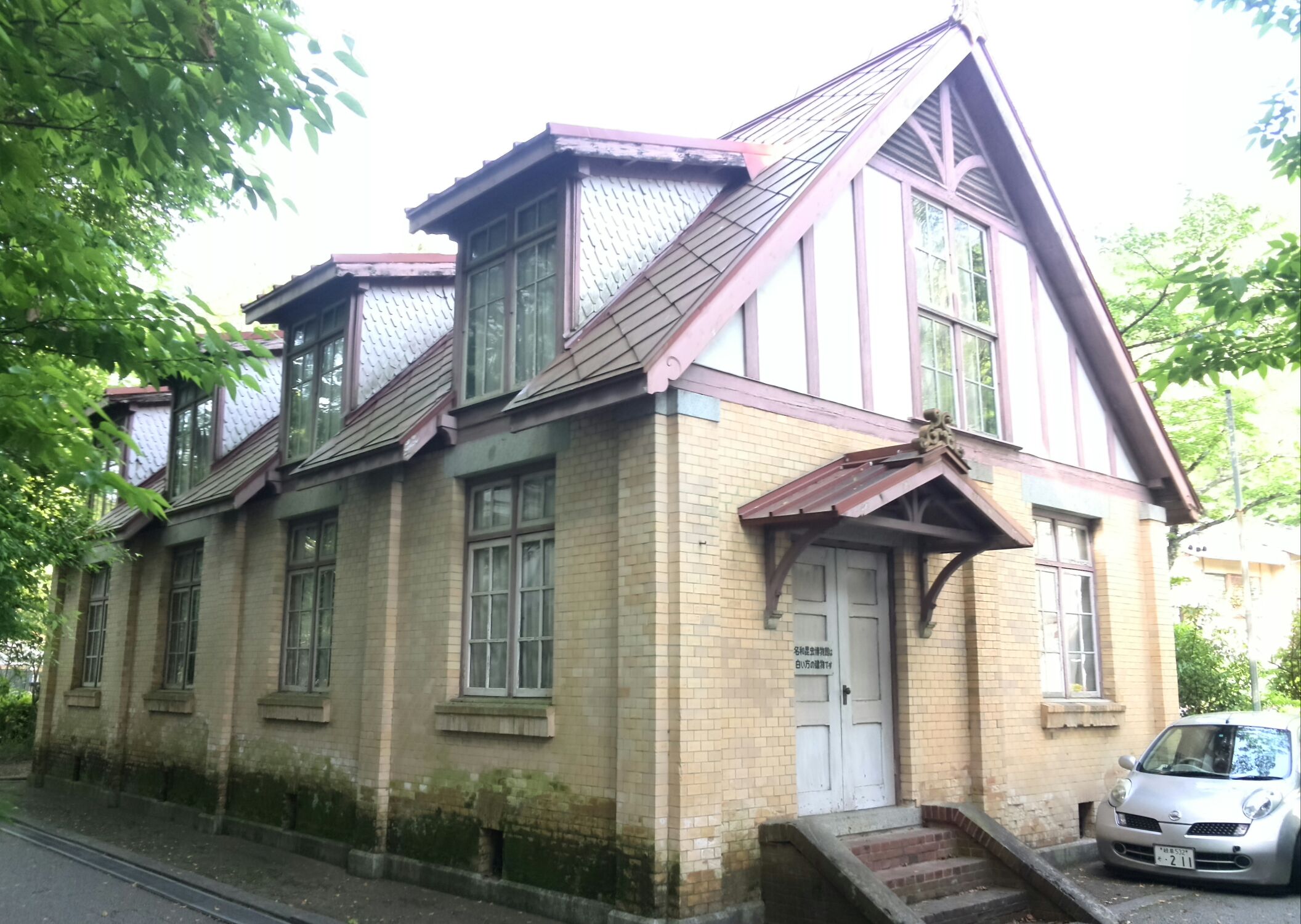 あった武田五一の設計です。桁行14・5m、梁間7.3mの2階建て、屋根は鉄板葺き切妻形式