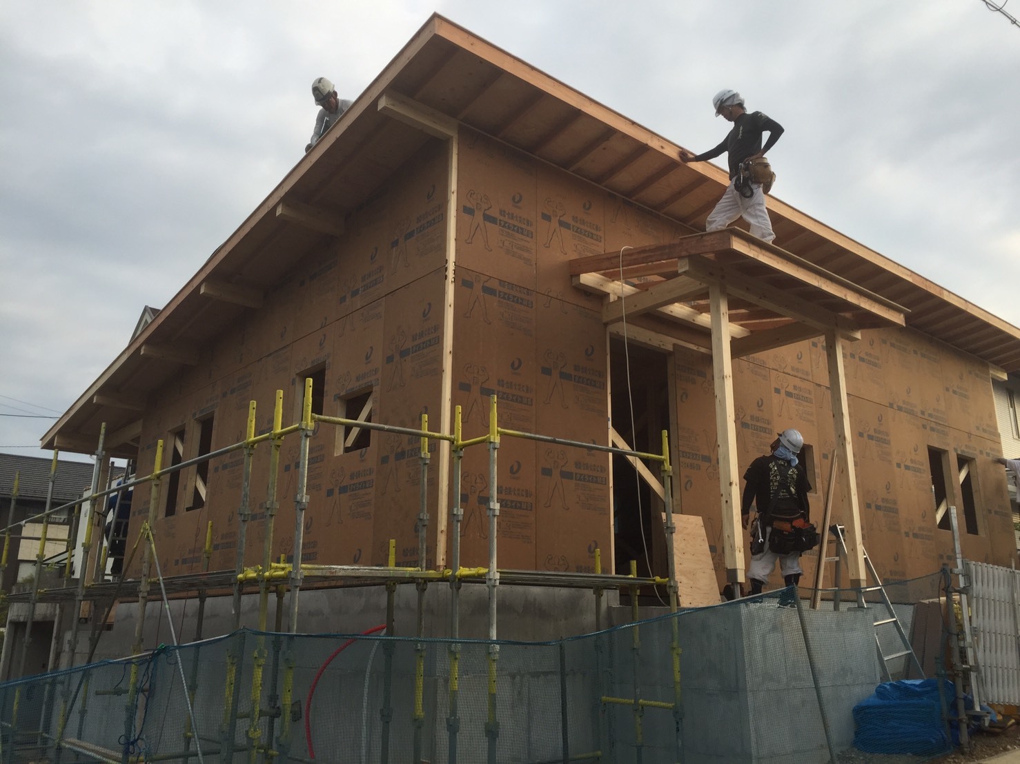 美濃加茂市のK様邸 上棟 2016.05.14 こんにちは、新人の鏡味です。本日、美濃加茂市のK様邸にて上棟を行いました。暑い一日となりましたが 無事に終了する事が出来ました!K様 おめでとうございます!!入社後 初めての上棟作業への参加となりましたが 同じく新人の兼定君と二人職人さんの足手まとい、もの珍しさの見学になる事無く、場内整理・片づけ作業等を行う事ができたつもりです。今後も、上棟作業には積極的に参加して行きたいと思います。又、工事進捗をBlogにてご報告させていただきます!