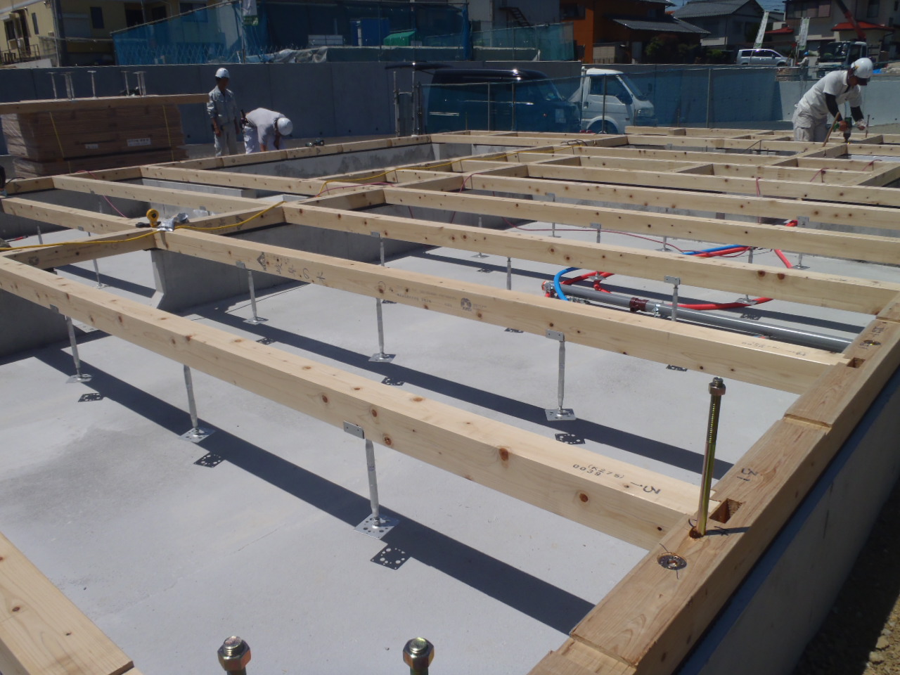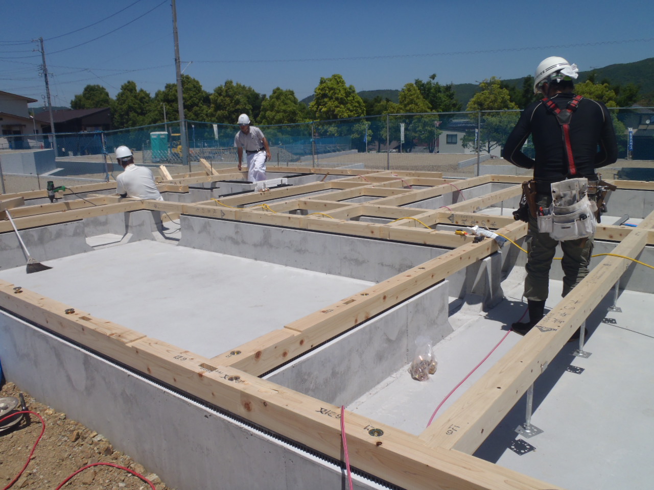 各務原市のN様邸 土台伏せ 2016.05.18 こんにちは、関谷です。 本日、各務原市のN様邸にて土台伏せ 開始です。 この後、先行足場組・建て方作業へ移ります。 又、今後の工事進捗をBlogにてご報告させていただきます!