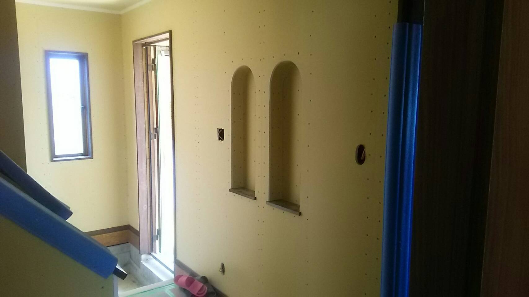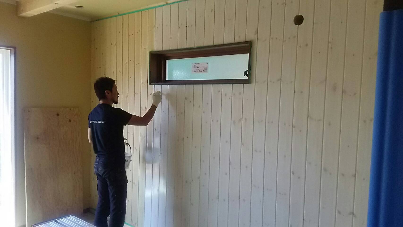 岐阜市のA様邸 塗装工事 2016.05.21 こんにちは、小原です。岐阜市のA様邸は大工造作工事も完了し、内部の塗装工事中です。お客様にも現場で立会していただき、塗装の色めを決めていただきました。パインの羽目板に自然塗料で塗装を行います。この後、内装工事へ移ります!又、工事進捗をBlogにてご報告させていただきます!