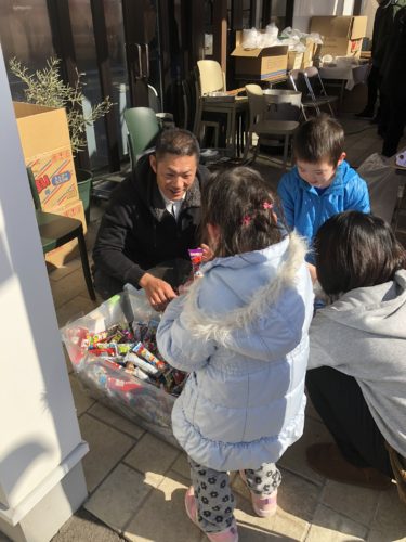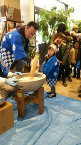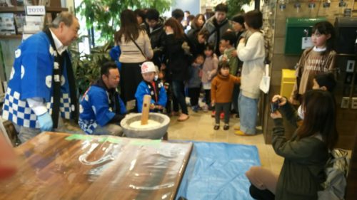 難波さんは餅つき大会にもハッピを着て参加してくれました。